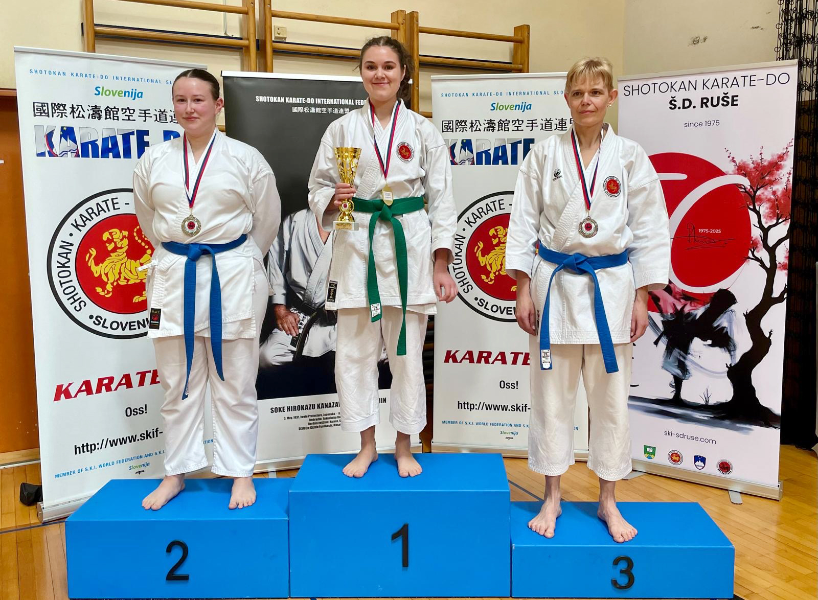 Amela Šumić je dosegla dve zlati v katah in srebrno v borbah. S prvim mestom je pri Starejših članicah nastopala dr. Angelina Blaževska in dosegla 1.mesto. Boštjan Ukmar, 1.mesto kate.