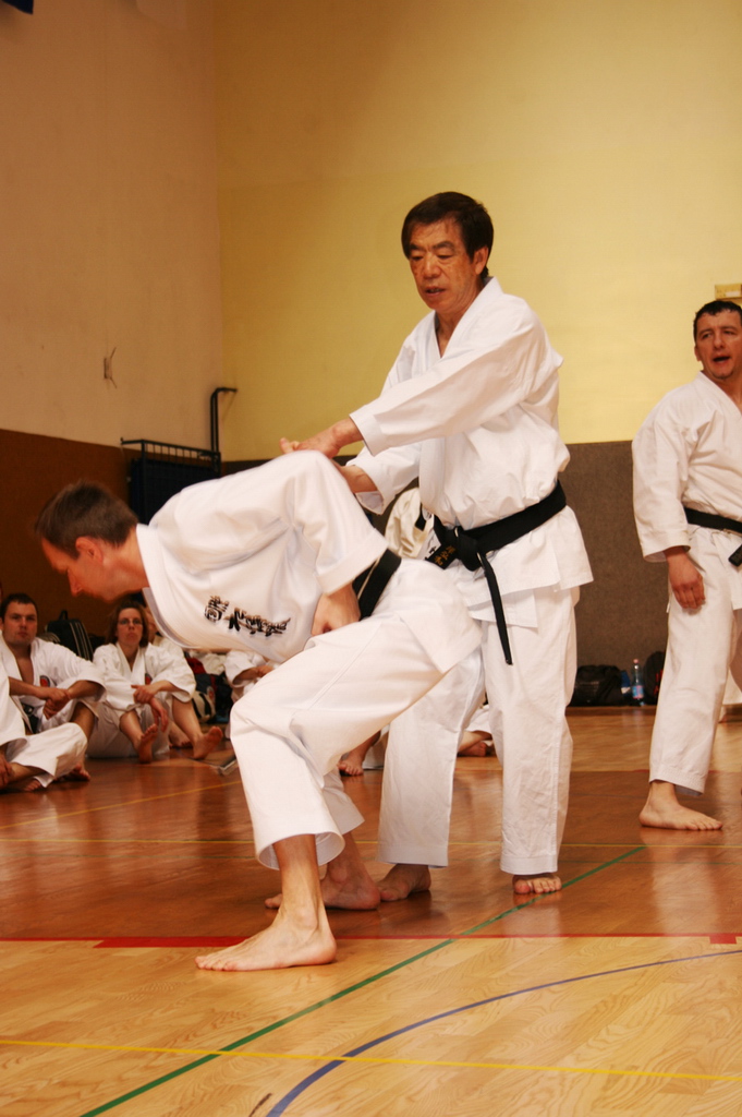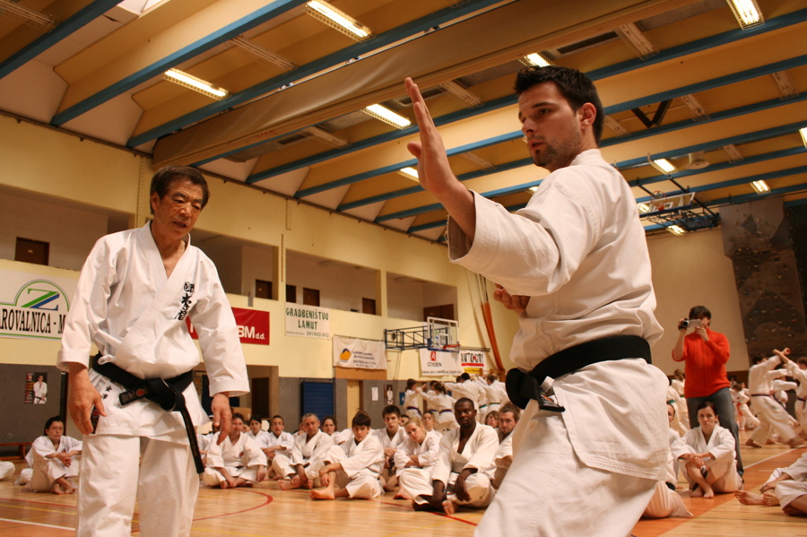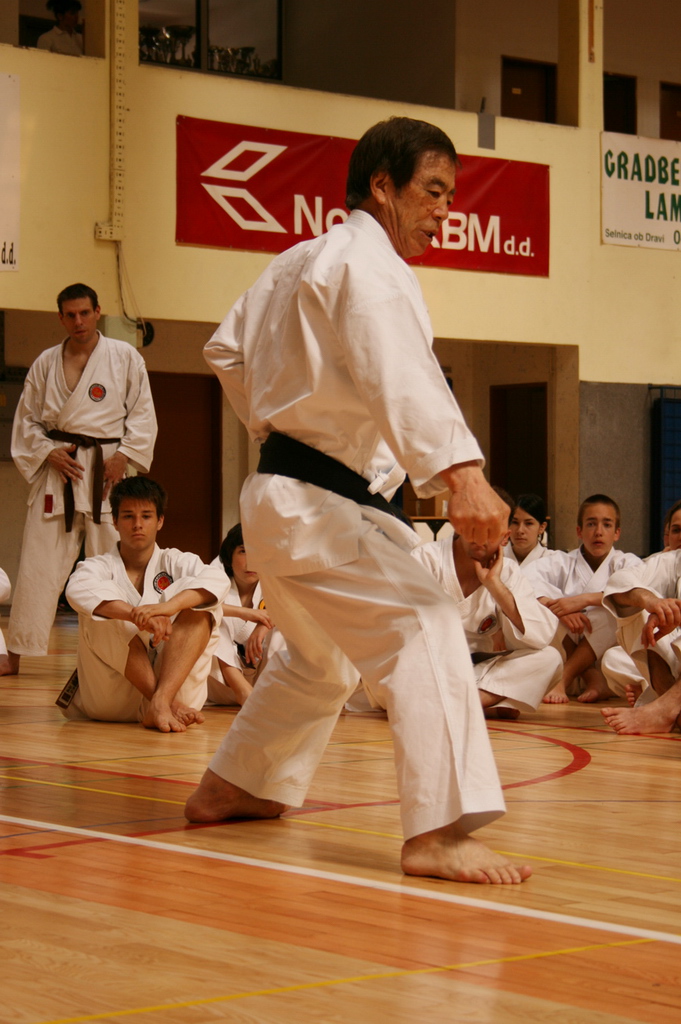 »Kancho« azijski naziv za vodjo pove veliko. Gospod Hirokazu Kanazawa 10. Dan se je rodil leta 1931 v mestu Iwate Japonska v veliki družini. Po pripovedovanju ima pet bratov in sestro. Vsi se ukvarjajo z različnimi borilnimi veščinami, tudi z boksom in sabljanjem. Hirokazu je začel vaditi karate potem, ko ga je s tem seznanil starejši brat kateri je živel in živi na Okinavi in se je vsake toliko časa vračal domov. Mama ga je vpisala na univerzo na katero sam ni želel, tako, da se je sam izpisal in vpisal na šolo na kateri so takrat trenirali največji karate mojstri. Tako mama ni vedela na katero šolo Hirokazu hodi. In kako je izvedela? Na šoli je bilo vsejaponsko prvenstvo v Karateju. Hirokazu je zmagal in njegova slika z tekstom je bila v dnevnem časopisju. Sosed je materi nesel pokazat, da je njen sin v časopisu vendar ga je zavrnila, da to že ni njen sin in da je to nekdo drug z istim imenom in priimkom kar je na japonskem pogosto in še na drugo šolo hodi. Ob prvem obisku doma po tem dogodku je Hirokazu materi vse priznal in jo prosil odpuščanja. Mati ga je vprašala če hoce biti najboljši. Odgovoril je da ja. Potem pa bodi, mu je odvrnila. Na svetovnem prvenstvu je imel zlomljeno roko in to je potožil materi, da zaradi tega ne more zmagati. Mati ga je vprašala, ali se Karate dela samo z rokami. Postal je svetovni prvak. »Kancho« Hirokazu Kanazawa 10. Dan je v svetu Karateja nesporni velikan. Danes mojstrov z tako preteklostjo ne moreš več prešteti na eni roki. »Kancho« je ustanovitelj in še danes glavni inštruktor in predsednik Shotokan Karate-do Internacional Federacije. Praktično je z včlanitvijo preko 120 držav sveta združil vse celine in naredil svet majhen in sam pravi, da je to velika družina. Vsake tri leta poteka svetovno prvenstvo in seveda prvenstva po kontinentih, kot je evropsko prvenstvo. Na njegovih Karate-do seminarjih je vedno polna udeležba saj je iskren in naraven. Osebno sem bil navzoč pri njegovi demonstraciji in uradni razglasitvi naziva 10.Dan. V prepolni dvorani in pred njo na prizorišču svetovnega prvenstva na indonezijskem Baliju je po prelepem sporedu, ki so mu ga pripravili domačini v narodnih oblačilih, izvedel vrhunsko demonstracijo iz njegovega Karate-do programa. Videti človeka, ki izvaja v vsej svoji lepoti in praktičnosti na izbranih partnerjih tisto v kar vseskozi verjameš, gane. Mister Shotokan, kot ga v svetu kličejo, Hirokazu Kanazawa ima tri sinove in vsi trije mu sledijo v Karate-doju.